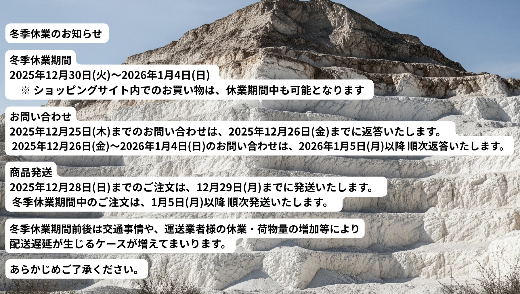 独自のこだわり採掘・製造法により化学的な処理や添加を行わず、